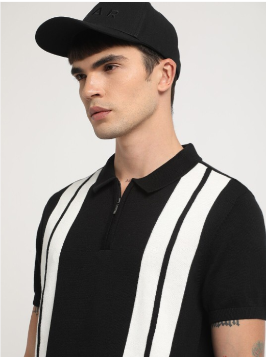 Vertical Striped Regular Fit Polo Collar Cotton T-shirt