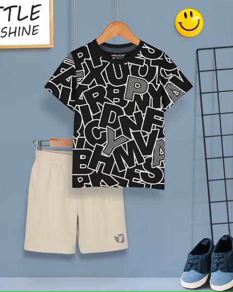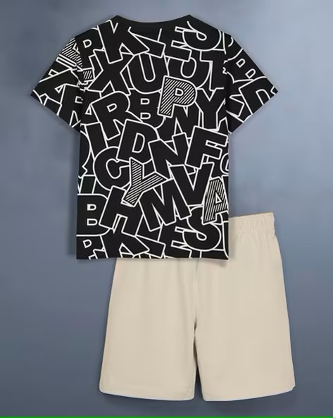 Boys Typographic Print T-Shirt & Shorts Set