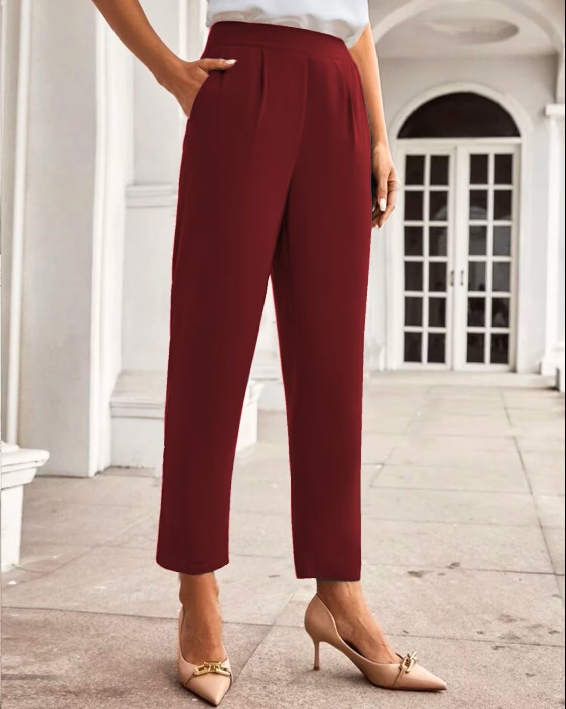 Women Relaxed Fit Trousers with Elasticated Waist