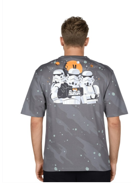 Grey & White t-shirt for men Graphic Regular length Round neck Short, Drop-shoulder sleeves Knitted