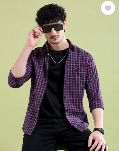 Men Slim Fit Checkered Spread Collar Casual Shirt