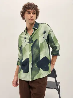 Men Relaxed Fit Fit Self Design Spread Collar Casual Shirt