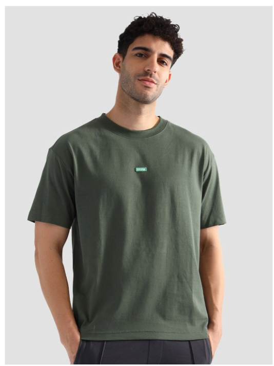 Olive lounge t-shirt, has a round neck and short sleeves with slip-on closure