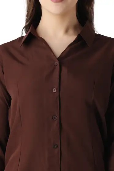 Women Solid Casual Brown Shirt