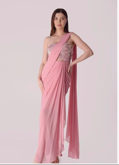 Women's Heavy Georgette Ready to Wear Saree Gown, Baby Pink
