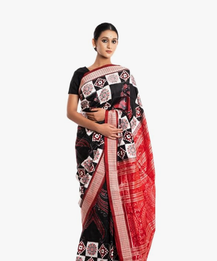 Odisha Handloom Handmade Pure Bomkai Silk Saree Khandua Natural Silk Ikkat Sambalpuri Saree For Women/Ethnic Wear/Traditional Handloom Saree With Regular Blouse