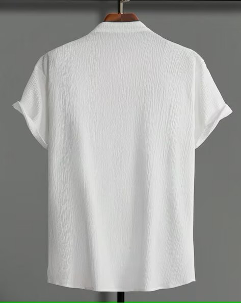 Men Knitted Loose Fit Shirt with Mandarin Collar