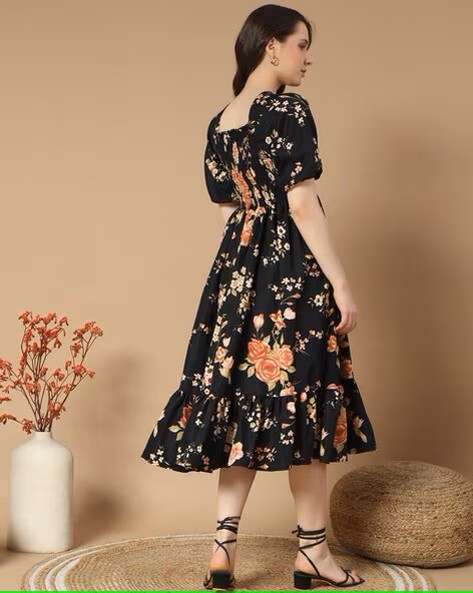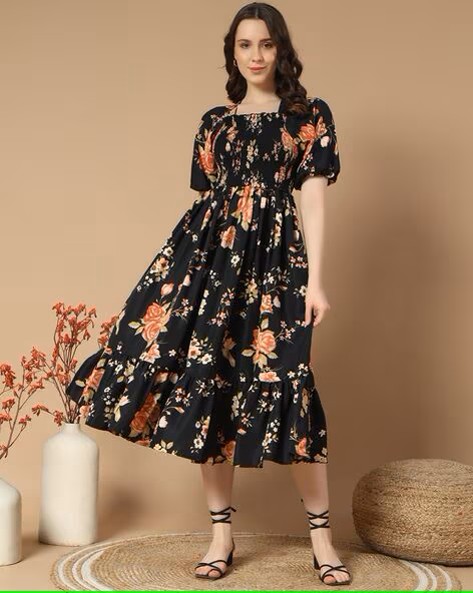 Women Floral Print Tiered Dress