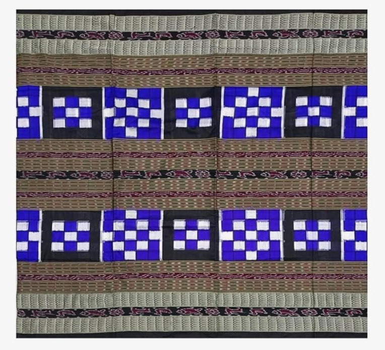 silk saree with blouse piece(Pasapali bichitrapuri design in blue black colors combination)