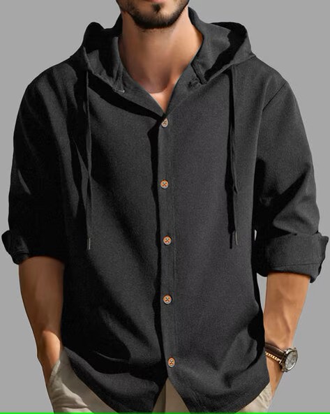 Men Shirt with Hooded Collar