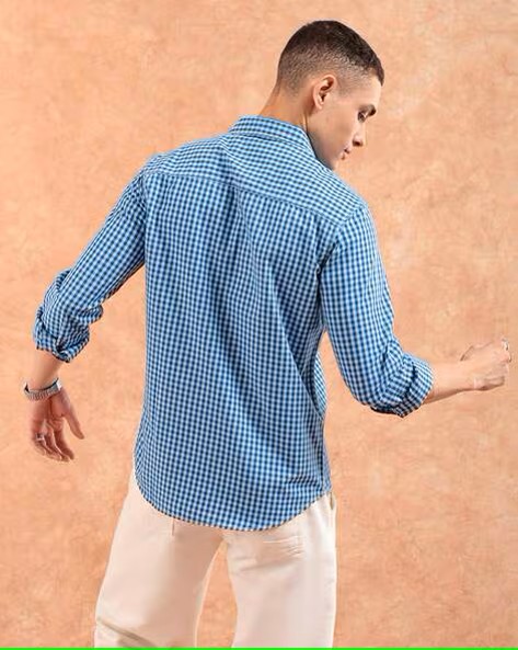 Men Checked Slim Fit Shirt with Patch Pocket
