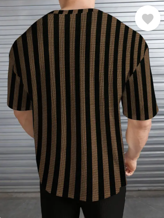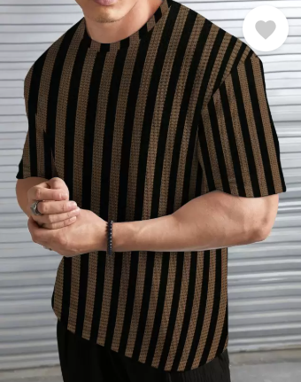 Men Striped Round Neck Polycotton Brown T-Shirt