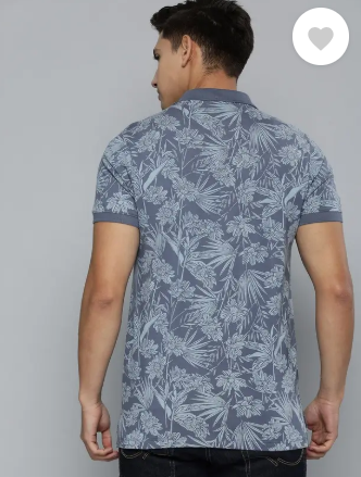 Men Printed Polo Neck Pure Cotton Grey T-Shirt