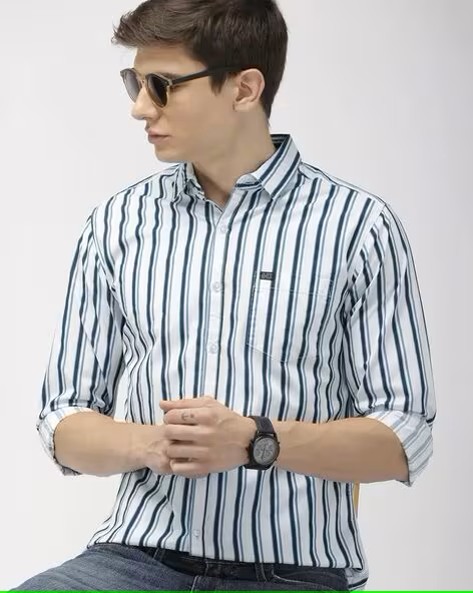 Men Striped Slim Fit Shirt with Patch Pocket