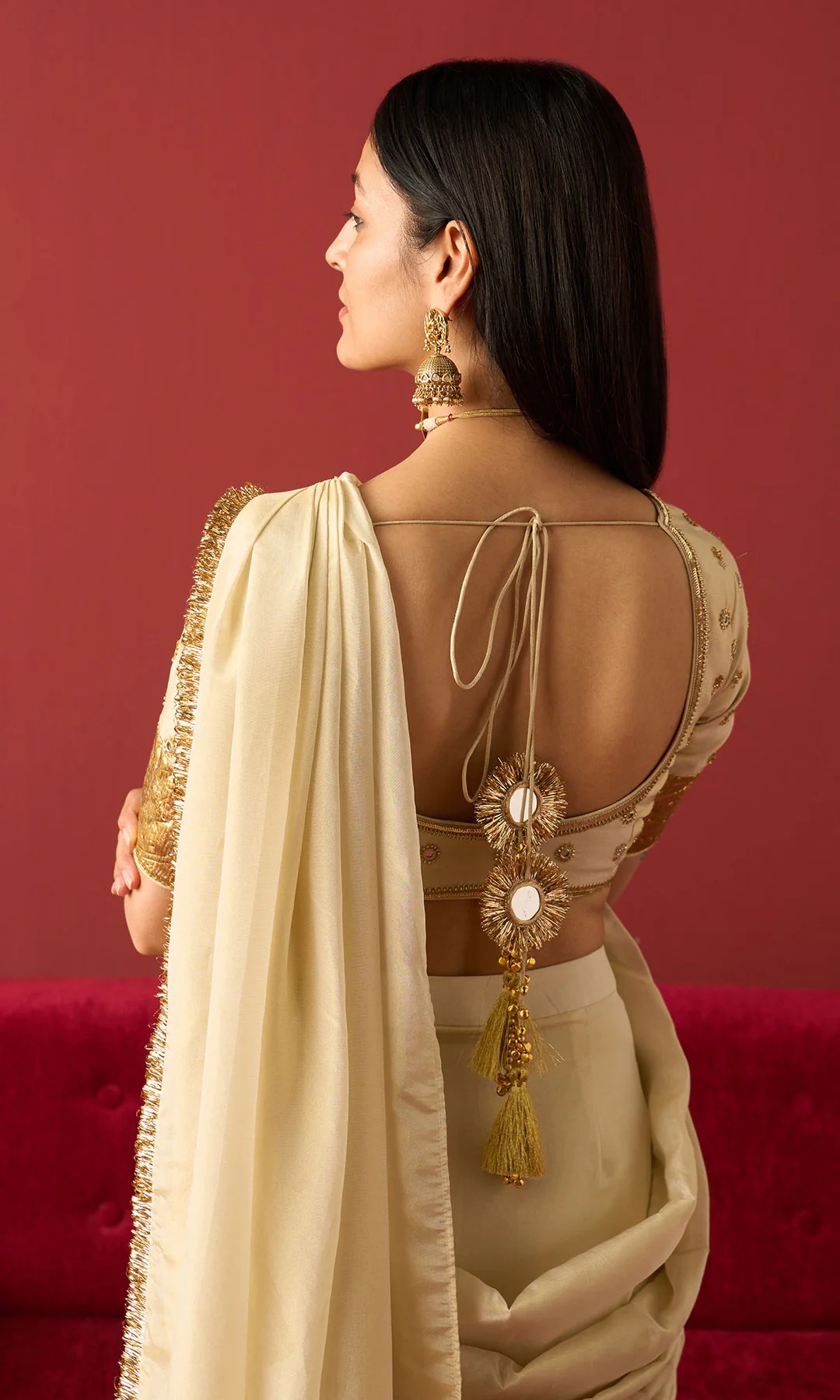 Rangeela Ivory Gold tissue drape saree with blouse( set of 2)
