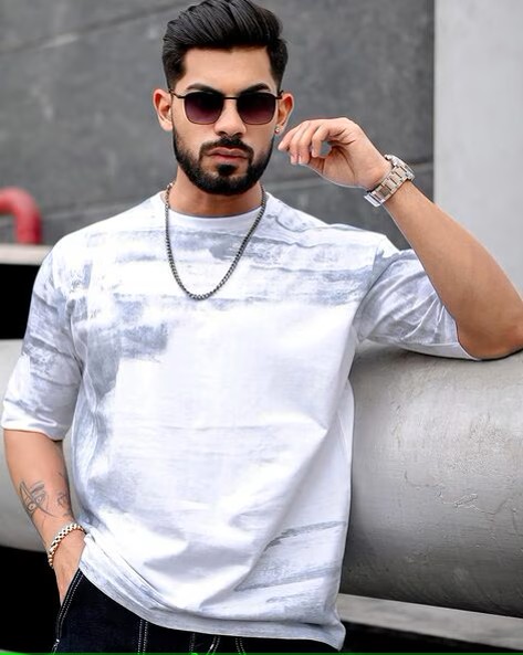 Men Tie & Dye Oversized Fit Round-Neck T-Shirt