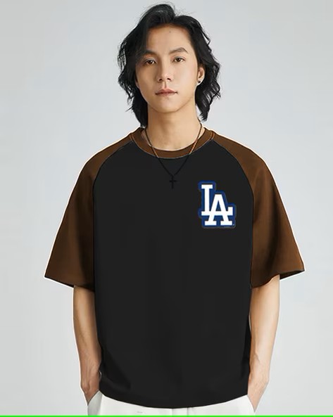 Men Typographic Print Loose Fit Crew-Neck T-Shirt