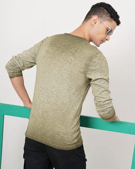 Men Tie & Dye Slim Fit Henley T-Shirt