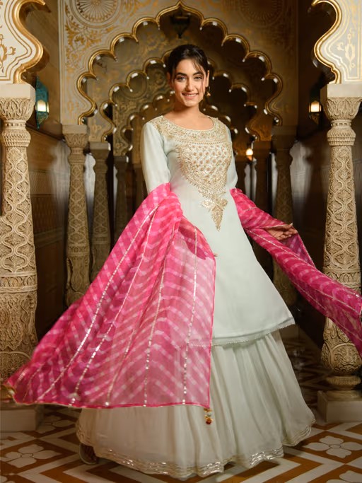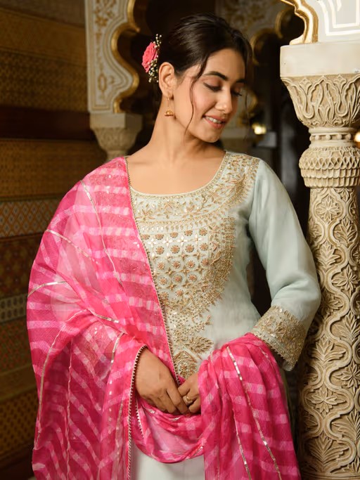 Look effortlessly elegant as you flaunt this ethnic set from Rhapsody Jaipur. It features a normal fit. Style yours with heels and dainty accessories. Lend a finishing touch with a clutch or a potli bag. This set is a perfect choice for festive celebrations and traditional events alike.