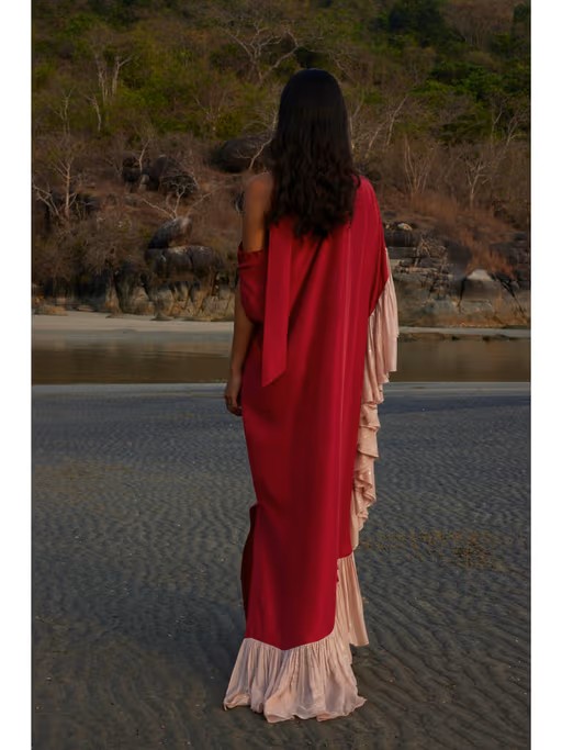 Maximize your style with this red kaftan dress from Twinkle Hanspal. It is tailored from high-quality silk fabric. This kaftan dress features flared sleeves, off shoulder, a slip-on closure and solid pattern. Complete the look with minimal jewellery and heels for elegant yet chic look.