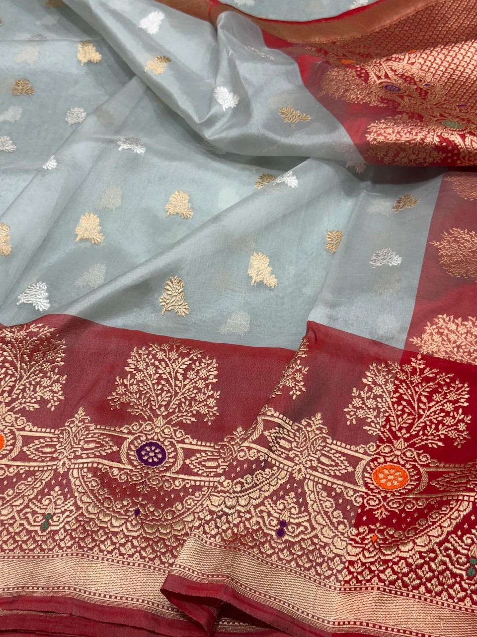 Ash Grey Handwoven Pure Organza Saree