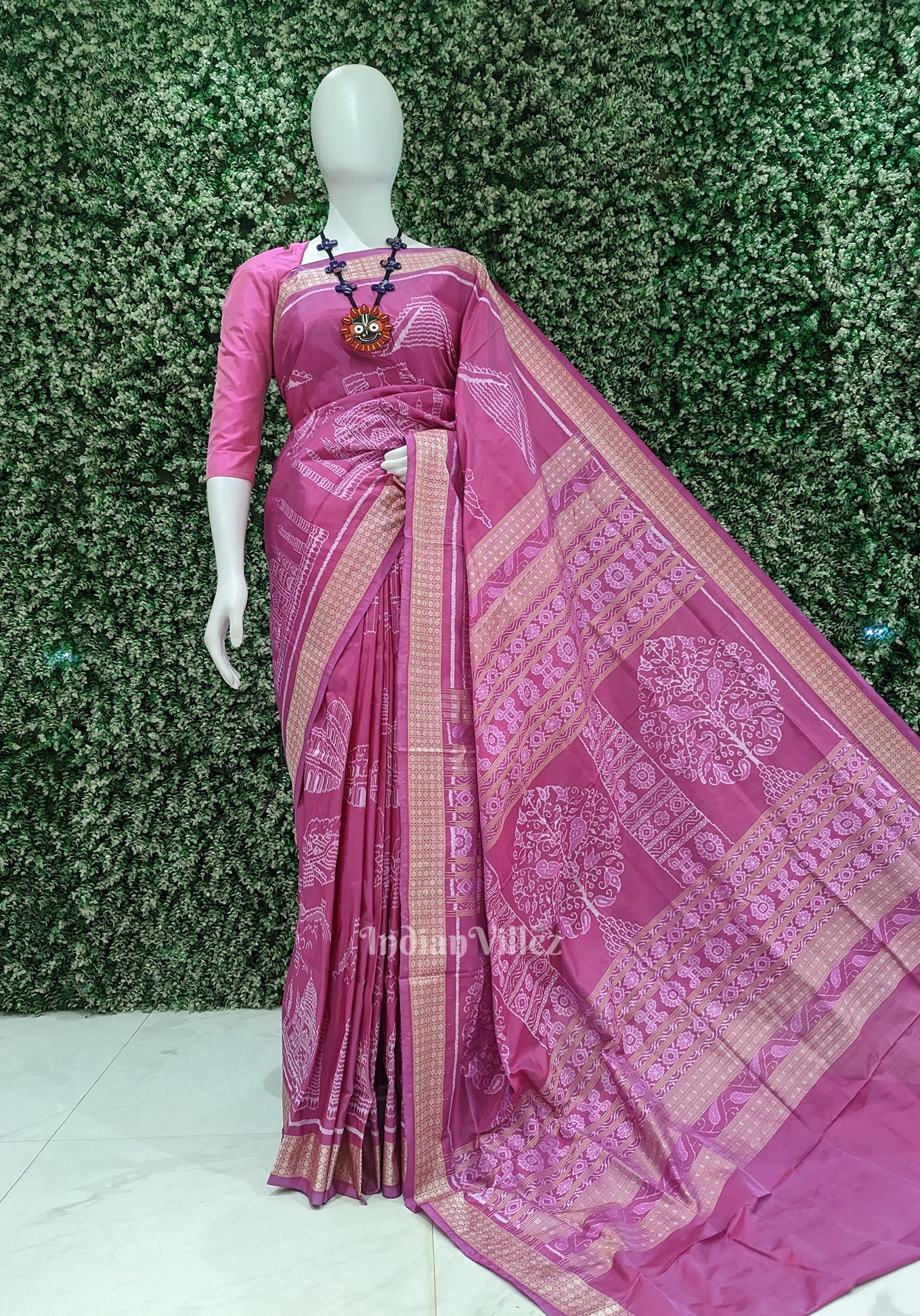 Rani Pink Natural Dyed Sambalpuri Silk Saree