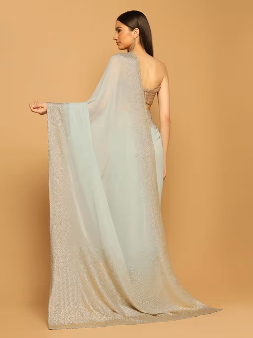 Powder Blue Sequins Embroidered Saree with Unstitched Blouse