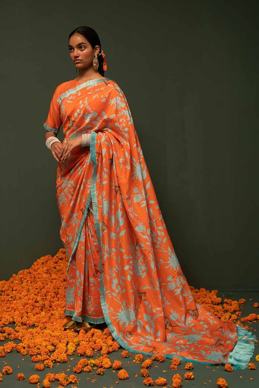 Masakali Orange Printed Saree