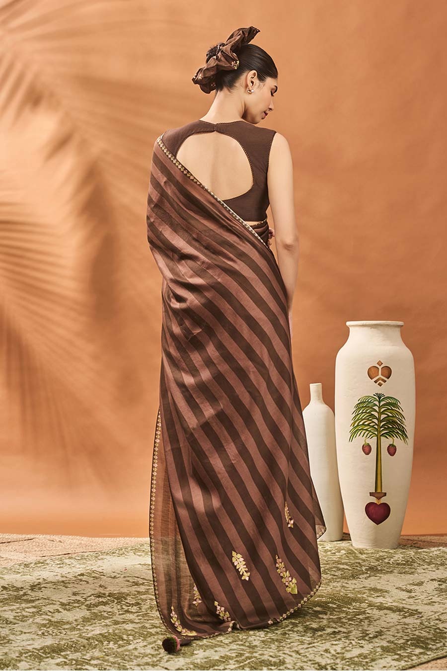 Brown Mocha Mosaic Saree With Blouse