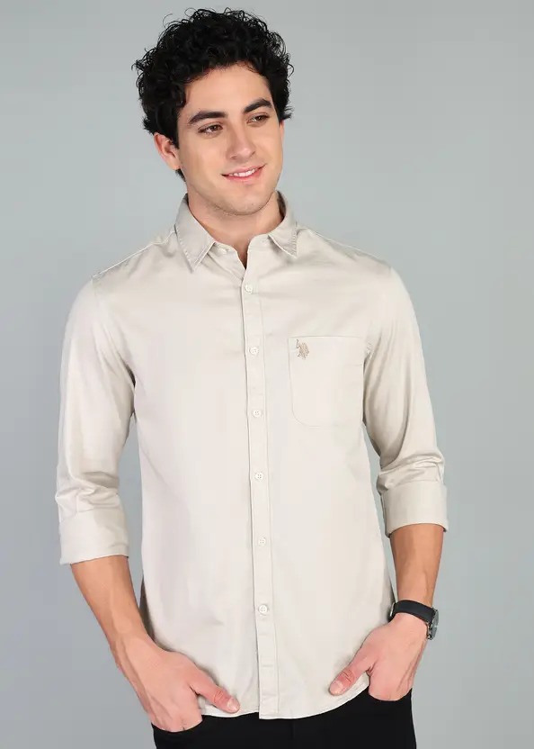 Men Slim Fit Solid Cut Away Collar Casual Shirt
