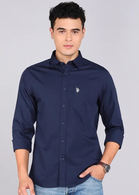 Men Regular Fit Solid Cut Away Collar Casual Shirt