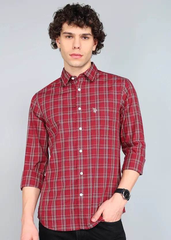 Men Regular Fit Checkered Cut Away Collar Casual Shirt