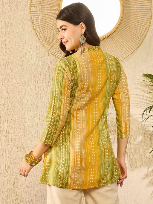 Women Green Rayon Blend Floral Straight Tunic