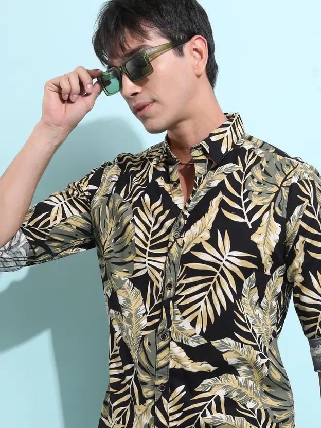 Men Slim Fit Printed Cut Away Collar Casual Shirt