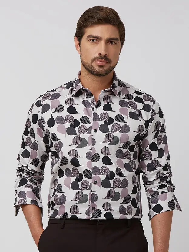 Men Slim Fit Printed Spread Collar Casual Shirt