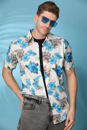Men Relaxed Fit Fit Floral Print Spread Collar Festive Shirt