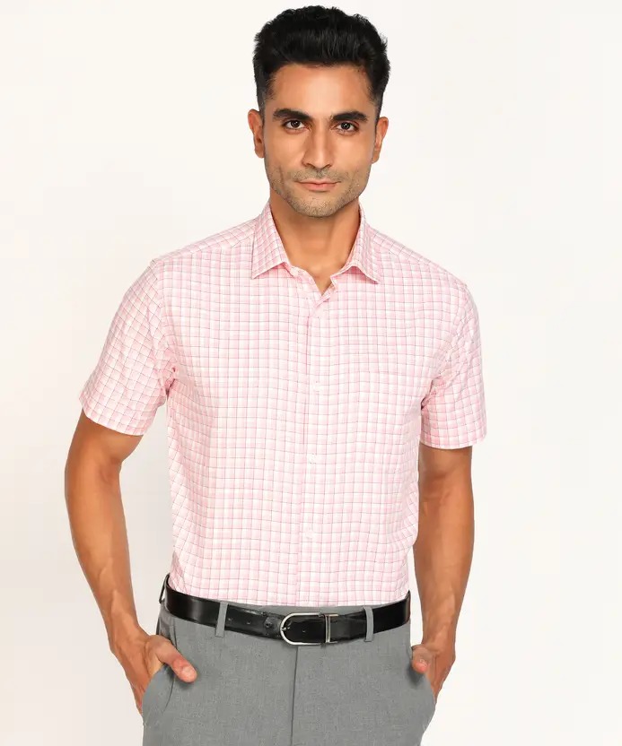 Men Regular Fit Checkered Spread Collar Formal Shirt