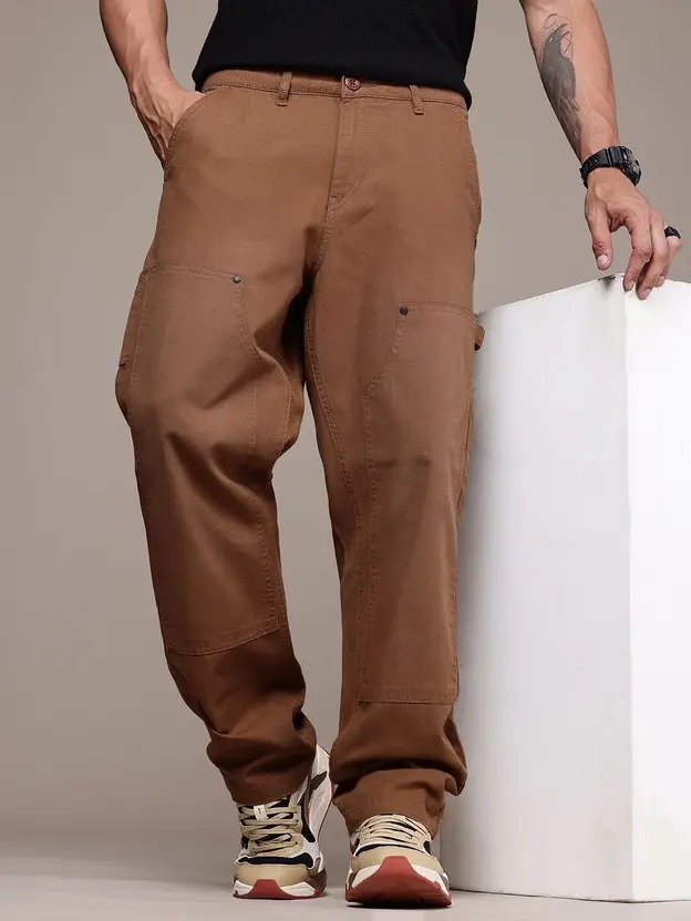 Men Regular Fit Brown Cotton Blend Trousers