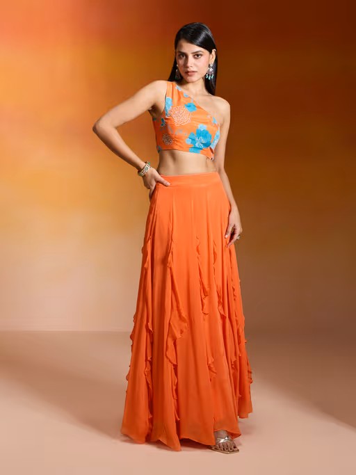 Floral Printed & Embroidered Lehenga Set