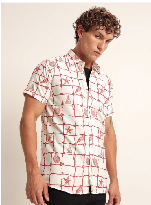 White windowpane checks printed opaque Casual shirt ,has a spread collar, button placket, na pocket, short regular sleeves, curved hem