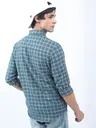 Men Slim Fit Checkered Cut Away Collar Casual Shirt