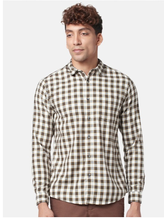 Gingham checked opaque Casual shirt ,has a spread collar, button placket, 1 patch pocket, long regular sleeves, curved hem