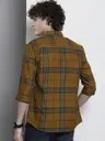 Men Regular Fit Checkered Cut Away Collar Casual Shirt