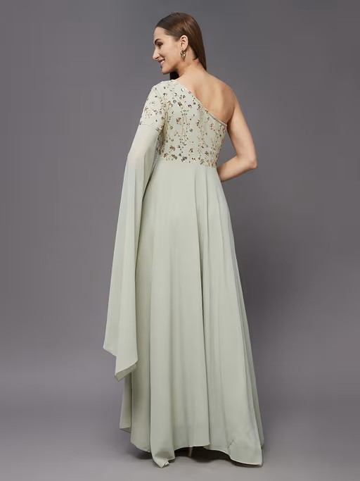 Curate a stunning look with this maxi dress by Miss Chase. Made with the finest material, this one-shoulder dress is a must-have. Style it with earrings and heels to complete the look.