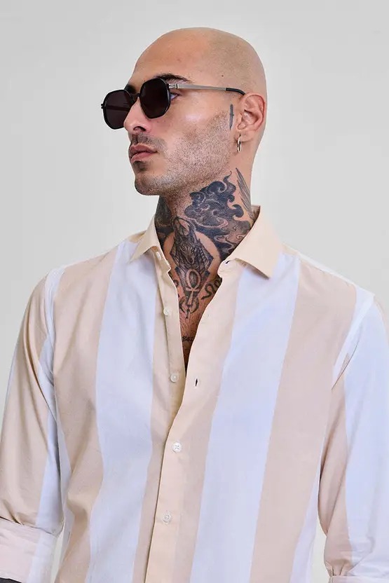 Men Slim Fit Striped Spread Collar Casual Shirt
