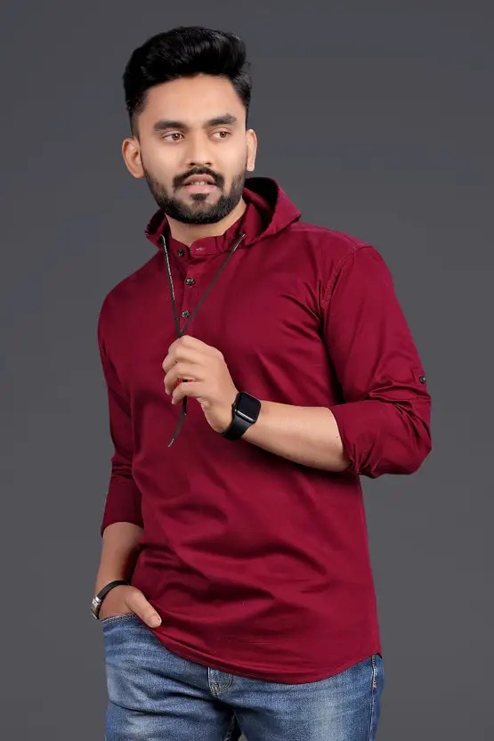 Men Regular Fit Washed Ribbed Collar Casual Shirt