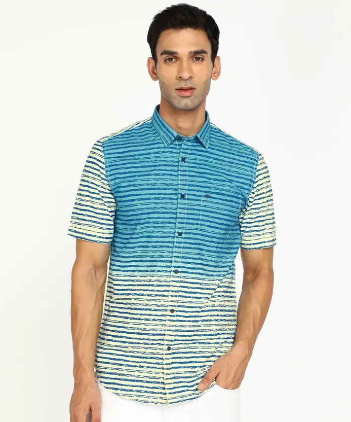 Men Slim Fit Striped Spread Collar Casual Shirt