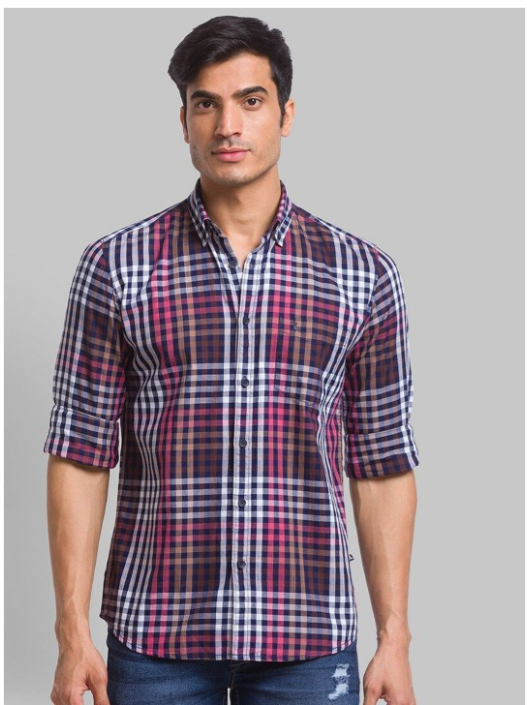 Multicolouredchecked opaque casual shirt ,has a spread collar, button placket, 1 patch pocket, long regular sleeves, curved hem