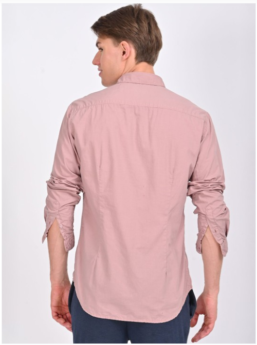 Pink solid opaque Casual shirt ,has a button-down collar, button placket, na pocket, long regular sleeves, curved hem