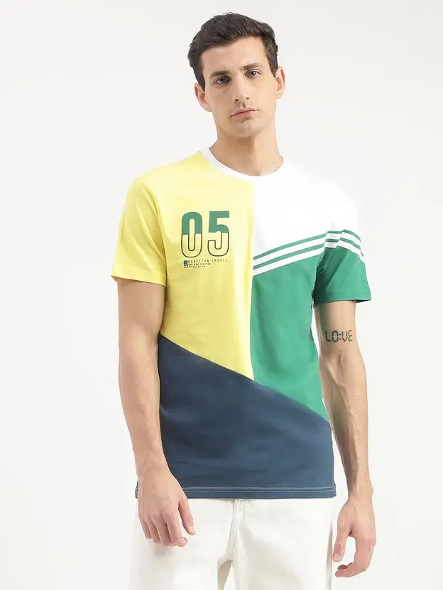 Men Colorblock Round Neck Pure Cotton Multicolor T-Shirt